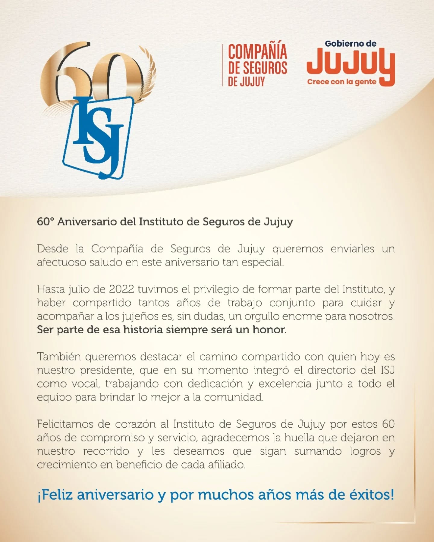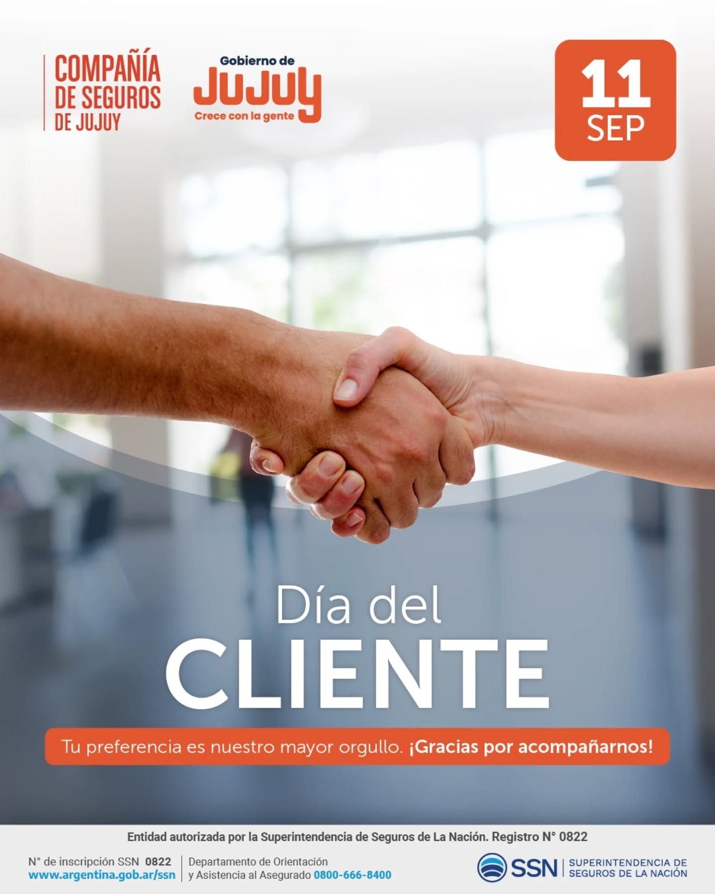En el día del seguro reafirmamos nuestro rol social y nuestra actividad que tiene el mismo noble propósito: "protegerte y acompañarte". Saludamos y felicitamos a todo el personal y autoridades que integran la Compañía de Seguros de Jujuy S. E; como así también a todas las empresas que prestan servicios en la provincia en este sector tan importante.