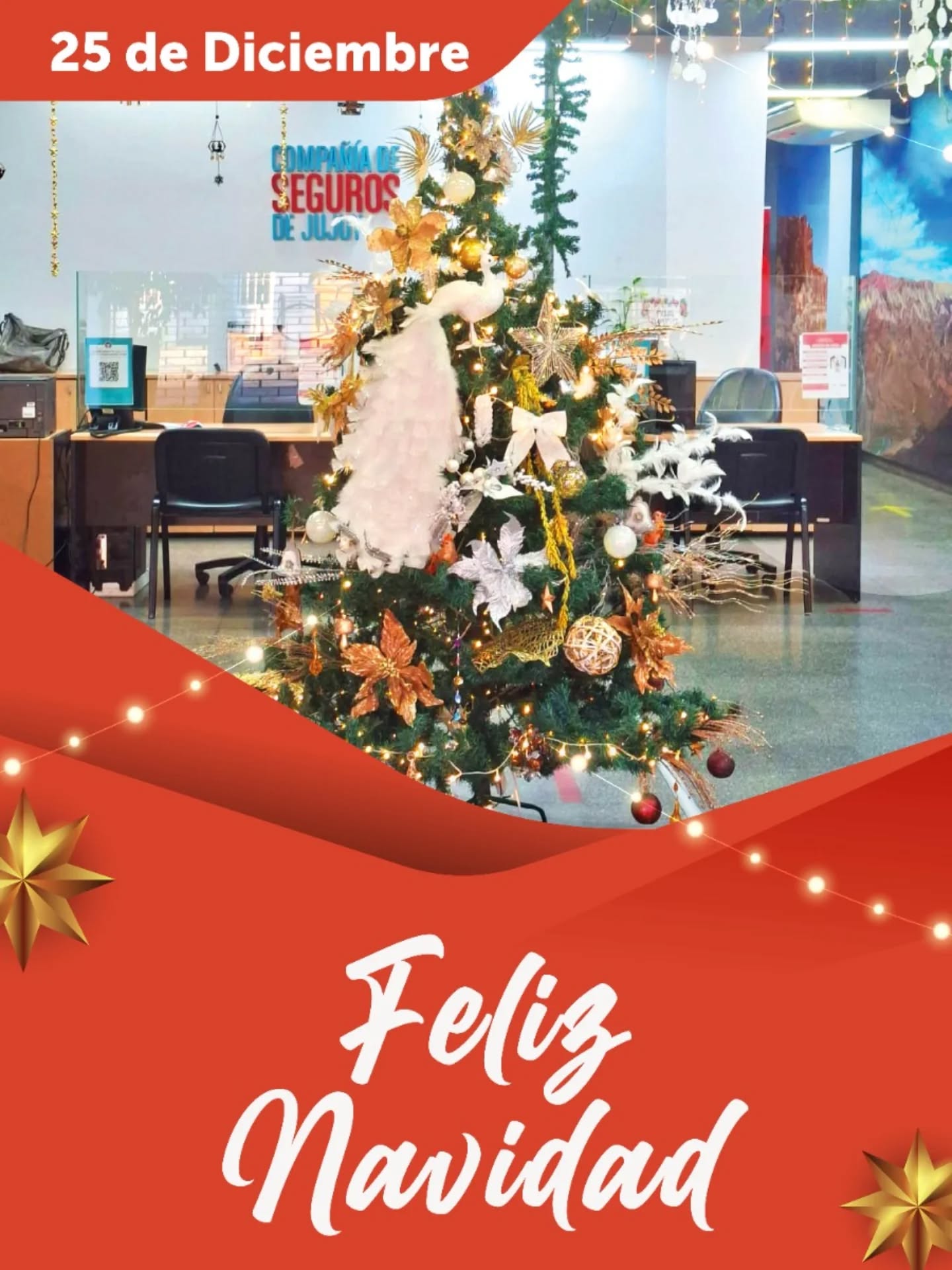 Un saludo muy especial de ¡Feliz Nochebuena! y ¡Feliz Navidad!, que la alegría de compartir en familia y amigos nos permita valorar lo realmente importante para llenar de amor, felicidad, paz y salud nuestros hogares. Vivamos y disfrutemos cada momento, vale la pena sentir que construimos cada instante nuestro futuro, vendrán más y mejores días. Un sincero saludo de afecto de parte de todos los que hacemos Compañía de Seguros de Jujuy S.E.